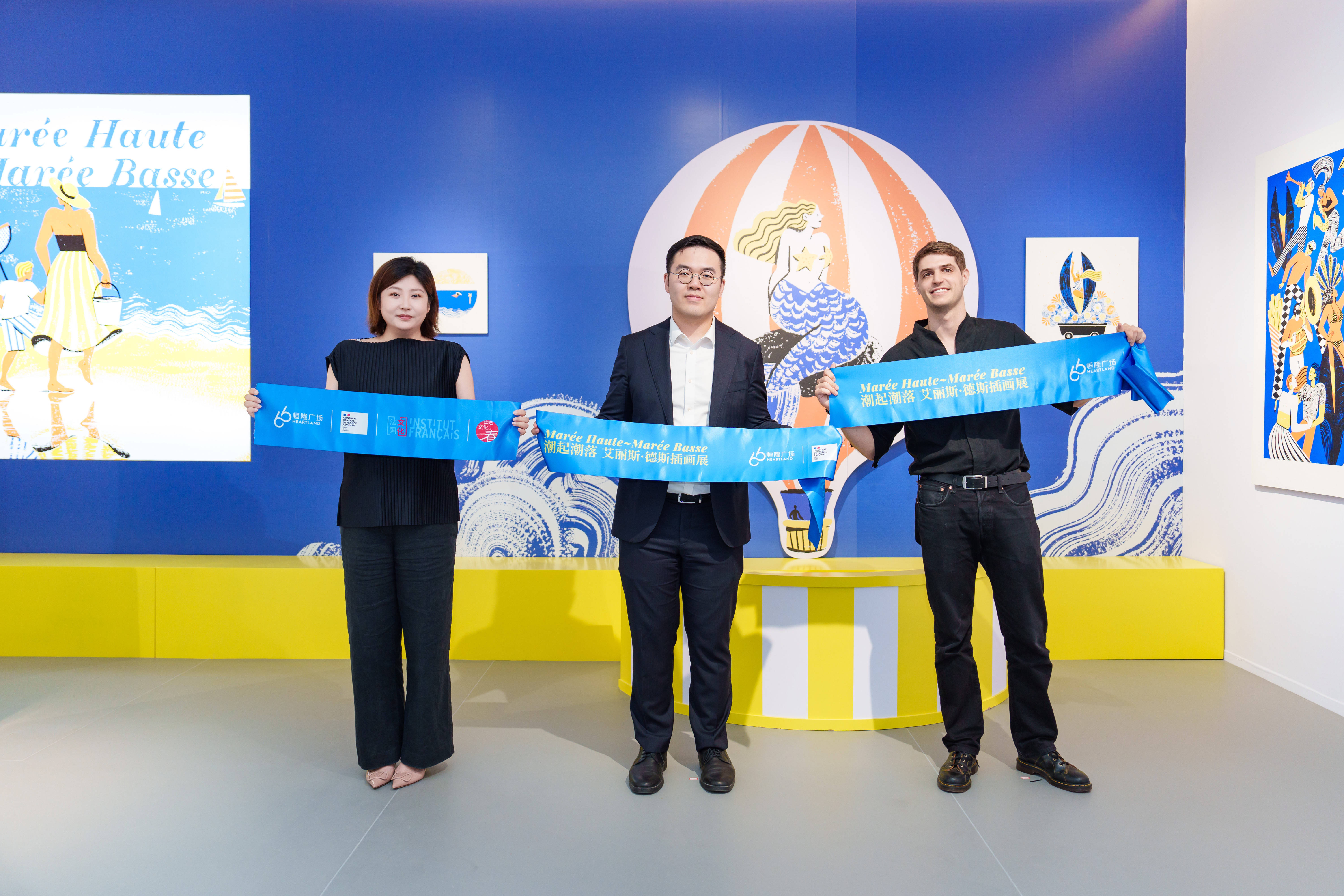 9月30日下午, 2025中法文化之春武汉站的收官活动——法国插画家艾丽斯·德斯(Alice Des)的插画展《潮起潮落》(Marée Haute, Marée Basse)在武汉恒隆广场东座B125开幕。